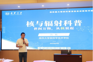 签约仪式结束后,PA视讯,PA视讯,PA视讯核工程与核技术系主任冯松为船山实验中学100余名师生带来了一场以《核与辐射科普-世间万物,从核说起》为题的科普讲座。报告从“纸不能无限折叠,尺不能无限对切”这一常识开始,引发同学们思考如何“看见”微观世界、原子核尺度的世界长什么样、物质世界又是由什么最基本的单元组成等问题。进而通过三步走的方式,介绍了我国核工业的发展历史、现状、未来,鼓励同学们在复杂的国际形势下要坚定不移地走高质量自主发展道路,要敢为人先。报告的最后,冯松博士还向同学们科普了无处不在的核辐射,引导学生正确看待电离辐射。同学们学习热情高涨,报告现场气氛热烈。