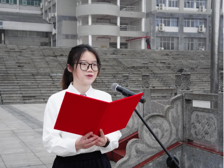 学生代表杨靓丽星作国旗下的演讲