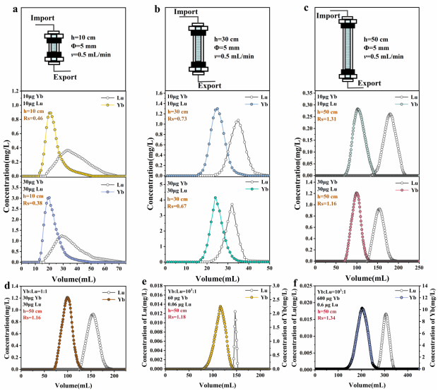 图1.基于HDEHP@SiO2-P高效柱吸附材料色谱分离Yb /Lu结果
