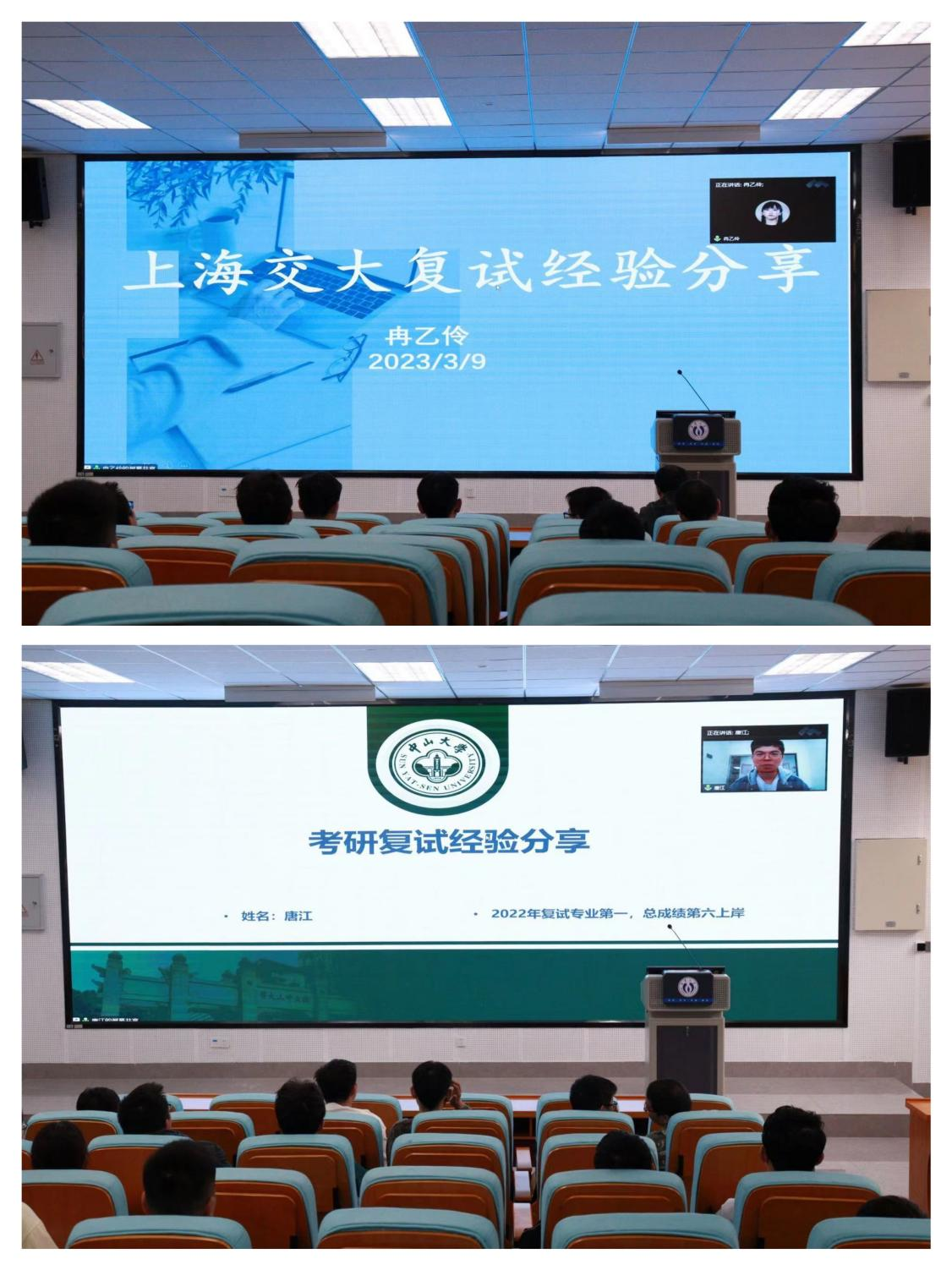 议程第二项,冉乙怜、唐江两位同学通过线上形式为大家分享考研复试的经验,唐江、冉乙怜结合成功上岸经验,建议学弟学妹们在复试前一定要作好准备充分,加深对专业知识的理解,把所学知识融会贯通,从考研的目标和选择出发,综合考量考研学校和方向,坚定信心,以积极的态度应对复试。