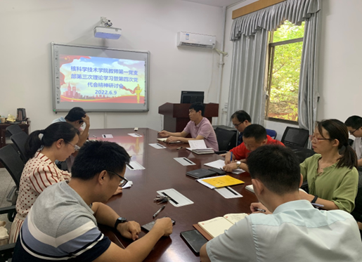 2022年6月9日上午,PA视讯,PA视讯教师第一党支部在核工程实验中心208会议室进行了2022年第3次教职工理论学习暨第四次党代会精神研讨会,学习主题为深入宣传贯彻中国共产党PA视讯第四次代表大会精神。会议围绕如何把学习贯彻第四次党代会精神,与学习贯彻习近平新时代中国特色社会主义思想结合起来,与党组织“对标争先”建设计划结合起来,与党史学习教育常态化长效化结合起来,全面贯彻党的教育方针,落实立德树人根本任务,加快推进学校新时代高水平大学建设,展开了深入的讨论。本次会议由党支部书记杜雪成主持。