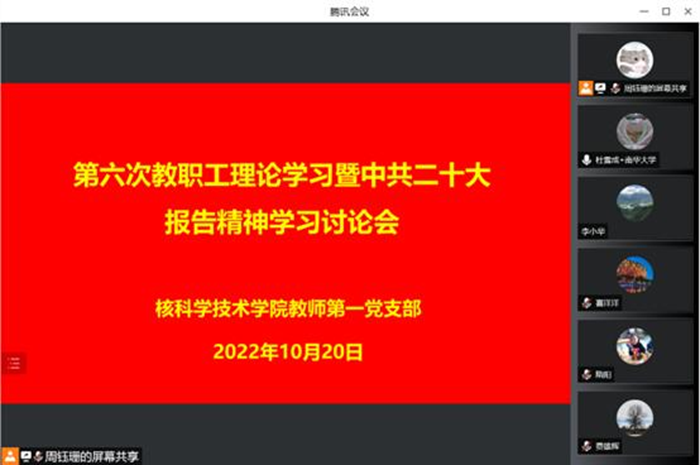 自由讨论环节,支部书记杜雪成同志强调了近期的疫情防控形势,越是关键时刻越是不能放松,越是考验党员的时刻,每个教师都要尽最大力量帮助学生解决学习和生活上的困难,做好线上线下上课准备。最后他强调我们全体党员要深入学习领会党的二十大报告的内容,准确把握报告的精神实质、丰富内涵和实践要求,深刻领会会议精神,真正把思想和行动统一到二十大确立的伟大战略上来,凝聚力量、团结奋斗,以奋发有为的精神推动学校的双一流建设!