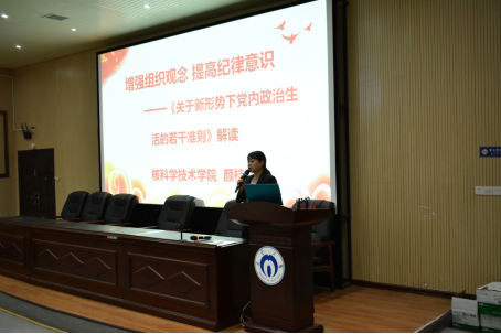 开班仪式后,颜桂花书记主讲培训班第一课,围绕增强组织观念,提高纪律意识,对《关于新形势下党内政治生活的若干准则》进行了解读。颜桂花阐述了《准则》制定的必要性、基本内容和亮点,并且以生动的案例故事穿插讲解了准则中的“不准”和“必须”,让准则内容更加深入学员心中。讲课中,颜桂花以随堂调研的方式了解了学员们疫情和在校期间的志愿活动、学习情况等,鼓励学员们在大学全方面提升能力和素质,树立远大的理想信念,为社会做贡献。