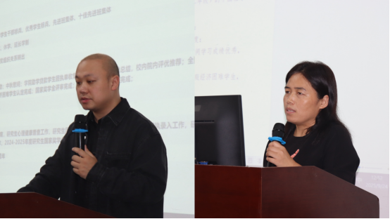 周华国围绕2025-2026学年第一学期团务工作进行阐述,内容涵盖就业服务、综合测评、单项奖认定、奖学金评定、评优表彰及阅读推广等多个方面,为基层团组织建设与学生发展提供了清晰指引。肖玉就心理健康教育与学风建设作出具体安排,强调要密切关注学生心理状态,共同营造积极向上的学习氛围。李昊则对学生宿舍管理及外宿审批要求作了说明,进一步明确了住宿管理的规范与责任。