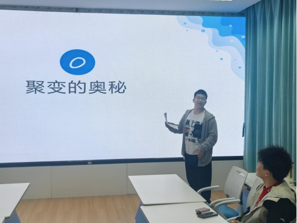 活动紧扣行业前沿,旨在搭建常态化学习交流平台,帮助同学们拓宽专业视野、明晰发展方向。活动中,何雨霖围绕核聚变相关内容作专题分享,重点介绍了核聚变的基本原理、技术优势、发展现状以及未来前景,并结合学校相关科研平台和研究基础,增进了同学们对核聚变领域的认识。随后,张博林结合国家能源发展战略和行业趋势,围绕核聚变技术现状、政策导向及未来发展方向进行了分享,进一步引导同学们认识核聚变在清洁能源体系中的重要意义,增强了大家对前沿核科学发展的关注与思考。
