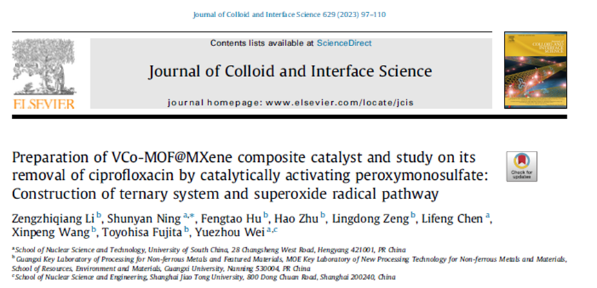 中心教师宁顺艳教授近期在物理化学领域TOP期刊,Journal of Colloid and Interface Science(中科院一区,IF:9.965)上发表重要学术论文。PA视讯为该项研究的第一完成单位,广西大学研究生李曾志强为第一作者,宁顺艳教授为通讯作者。