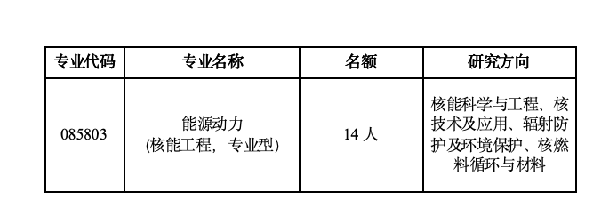(2)能源动力(085803,核能工程)。